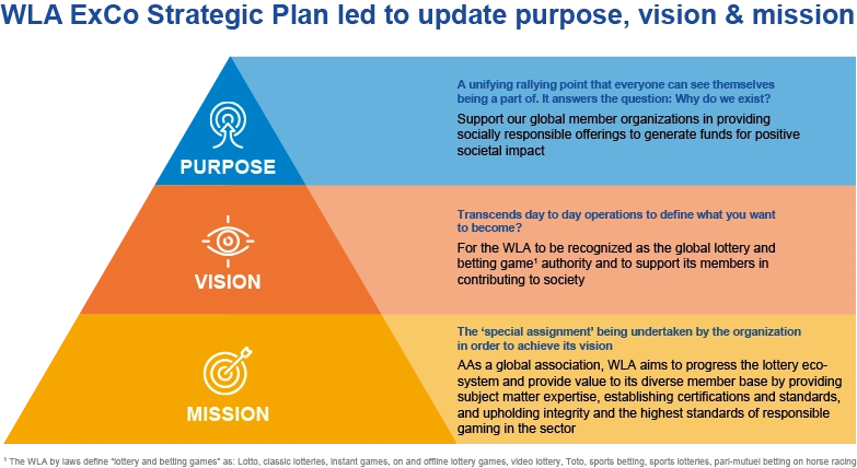 We will promote a responsible gaming and security “culture” across the lotteries and sports betting ecosystem, comprising all related organizations and industry at large, as well as underscoring the positive impact that WLA membership has had on global societies. Â