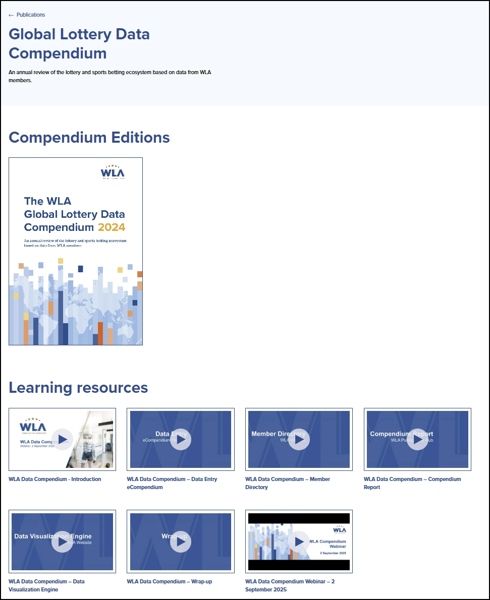 A section has been dedicated to the Global Lottery Data Compendium, which provides Compendium editions and learning resources to assist members in using this valuable data resource.